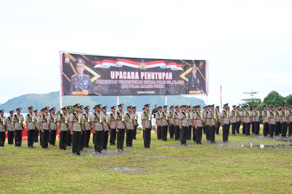 Wakapolda Maluku Utara, Brigjen Pol. Samudi, S.I.K., M.H., memimpin upacara penutupan Pendidikan Pembentukan Brigadir Polri Gelombang I Tahun 2024 di SPN Polda Malut Kelurahan Gurabati, Kecamatan Tidore Selatan pada Kamis (11/7/2024).