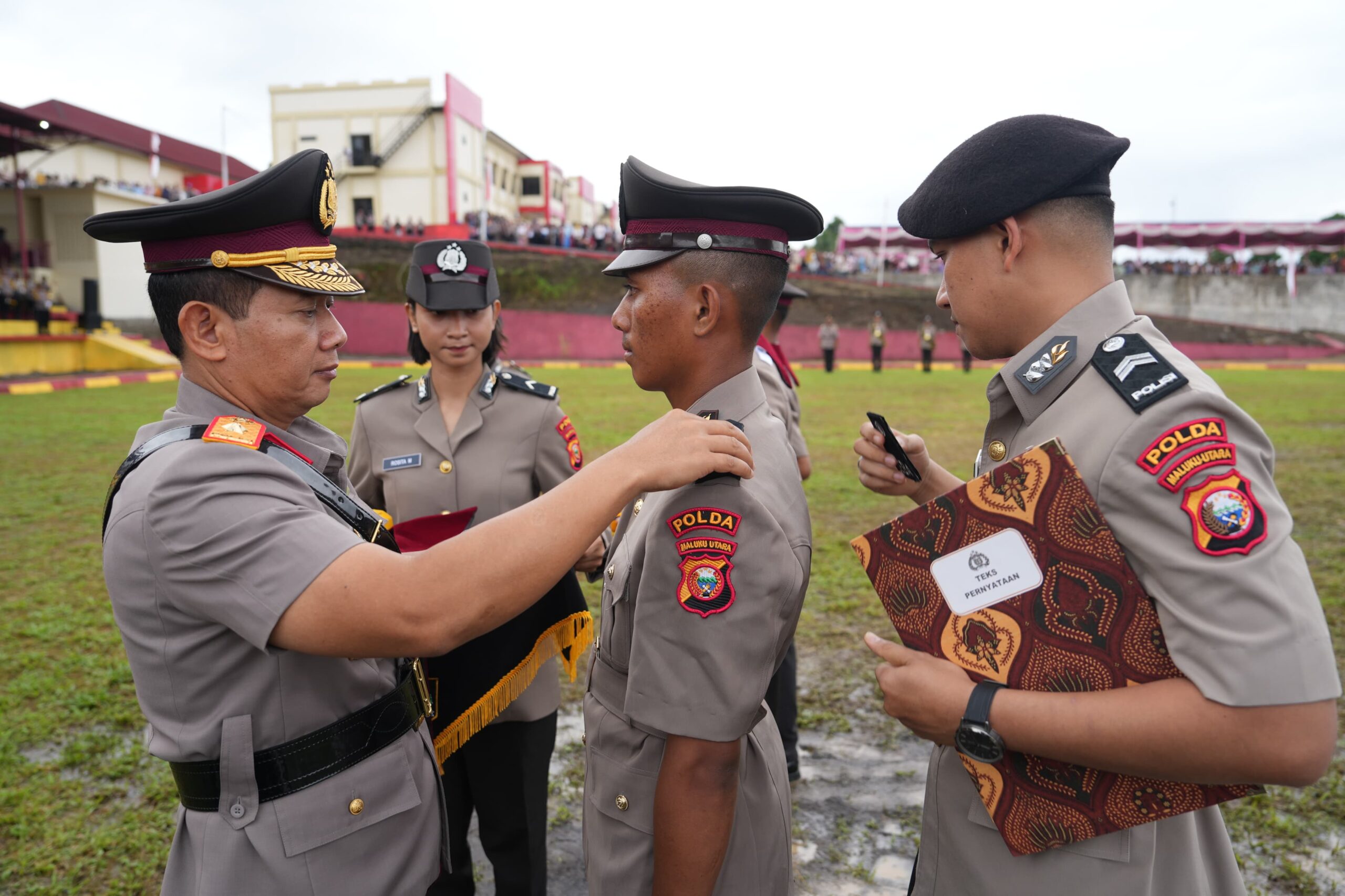 Dalam sambutannya, Wakapolda Malut membacakan amanat dari Kapolri. Ia mengucapkan selamat kepada para peserta didik yang kini resmi menjadi anggota Polri dengan pangkat Brigadir Polisi Dua dan Bhayangkara Dua Polisi.
