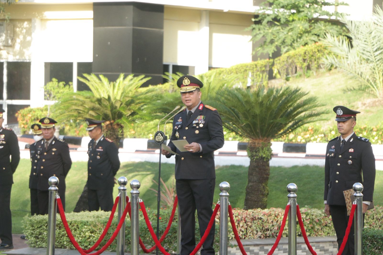 KompasNews,Sumbar Wakil Kepala Kepolisian Daerah Sumatera Barat, Irjen. Pol. Gupuh Setyono, S.I.K., M.Si., memimpin langsung upacara peringatan Hari Lahir Pancasila yang dilaksanakan di Lapangan Apel Mapolda Sumbar pada Senin pagi (2/6).