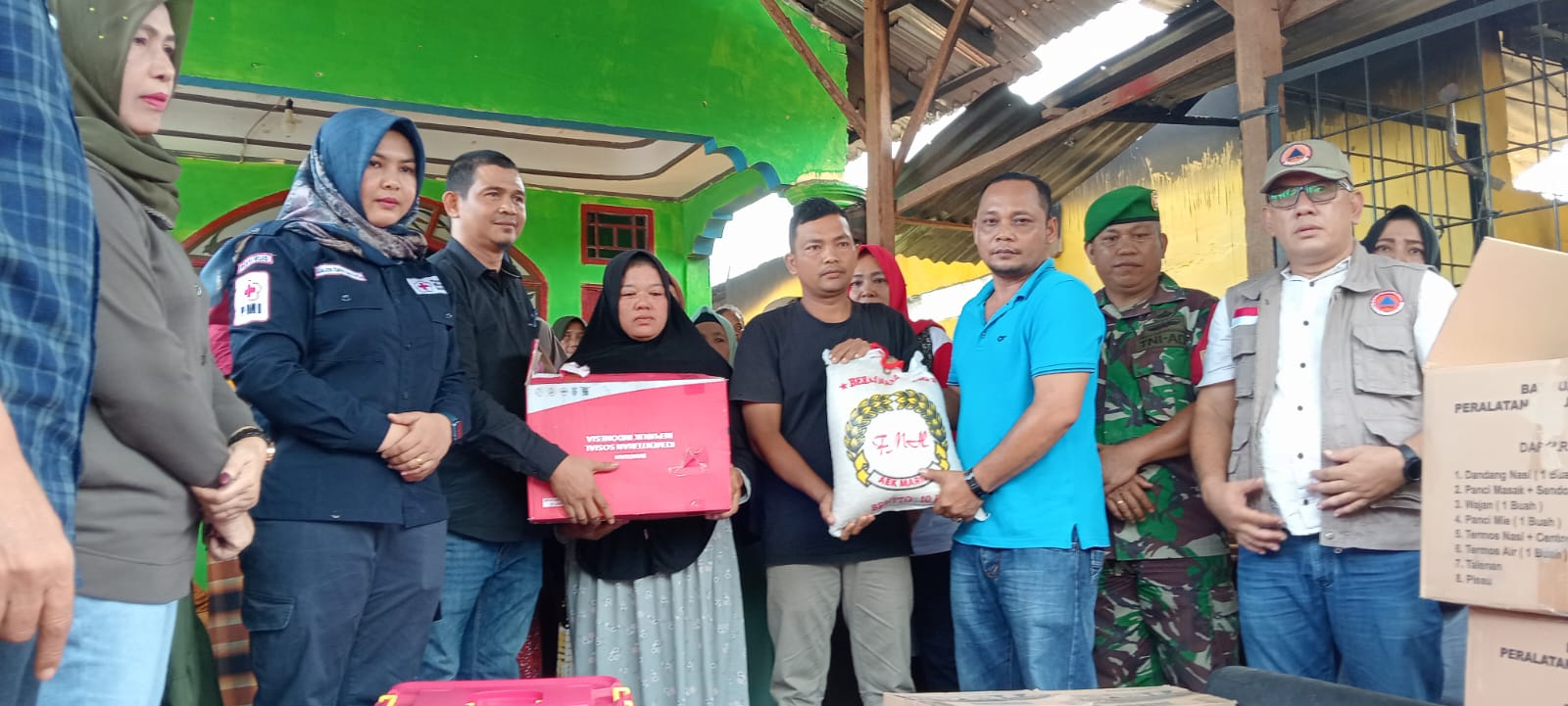 Dalam kunjungan itu, Wabup Atika datang bersama rombongan membawa bantuan sandang dan pangan untuk para korban.