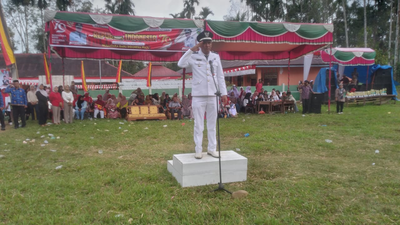 Upacara penurunan bendera sore ini dilakukan oleh Pasukan Pengibar Bendera Pusaka (Paskibraka) dari SLTP N 1 Dua Koto Sedangkan Inspektur upacara di pimpin langsung oleh Wali Nagari Sjmoang Tonang Utara Komandan Misrawardi,SH