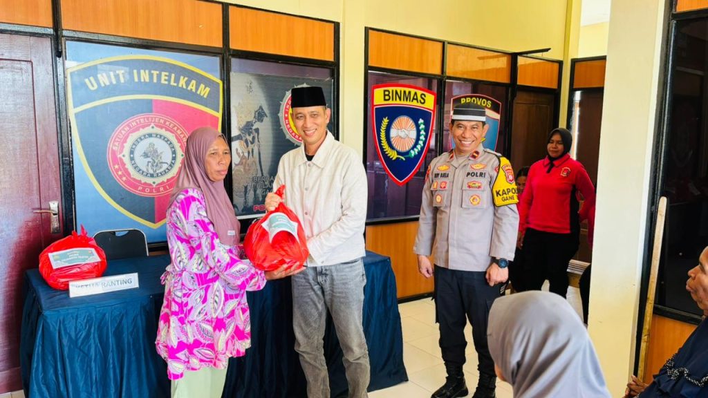 Kepolisian Resor (Polres) Halmahera Selatan melalui Kepolisian Sektor (Polsek) Gane Timur menyelenggarakan kegiatan bakti sosial berupa pembagian paket sembako pada Selasa (3/3).